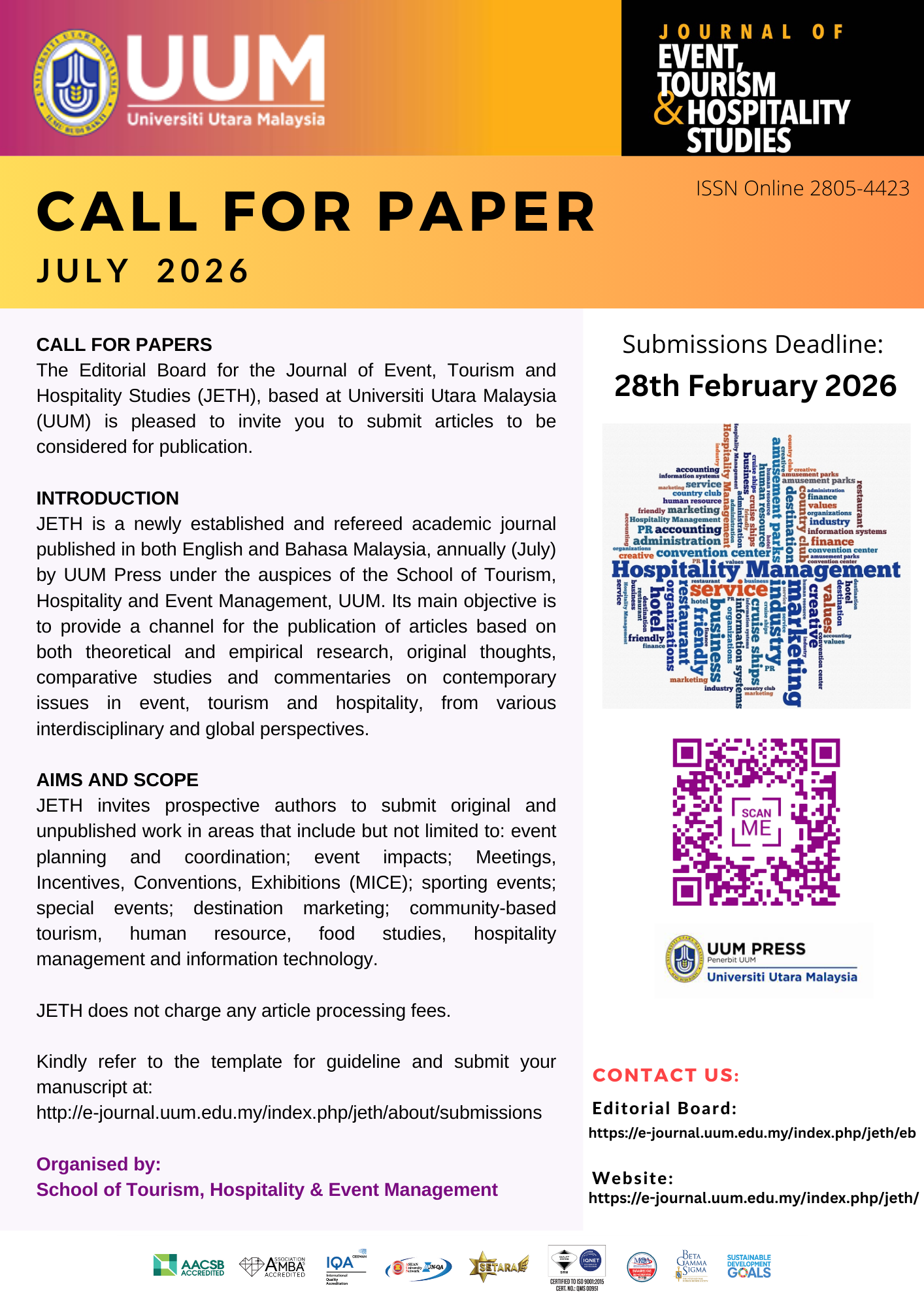 Journal of Event, Tourism and Hospitality Studies (JETH) are licensed under a Creative Commons Attribution 4.0 International License